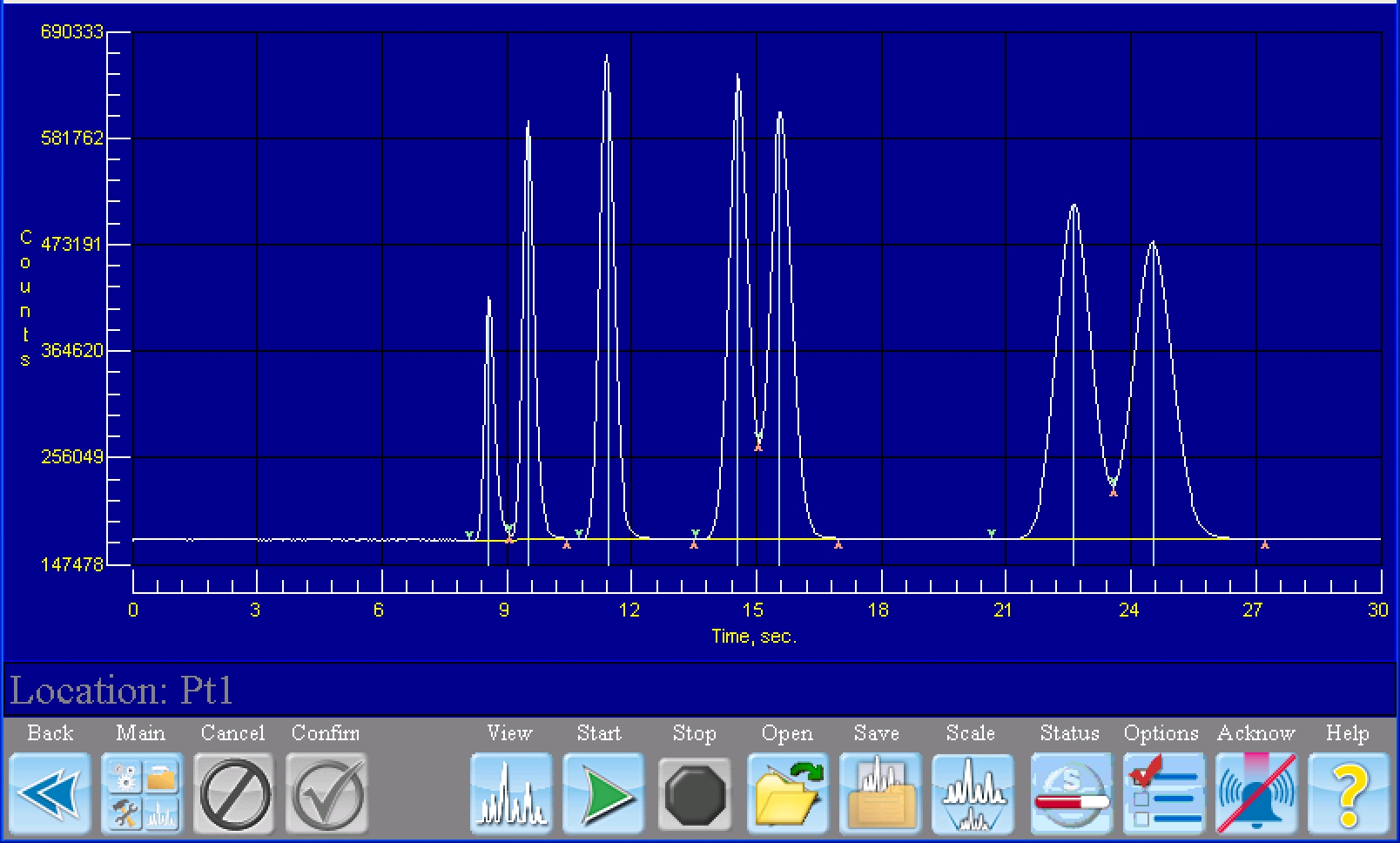 Rilevamento del campione - Una volta che i gas separati lasciano (o eluiscono) dalla colonna(dalle colonne), passano attraverso un rilevatore che, a sua volta, risponde generando un segnale di uscita. Questo segnale fa quindi generare i picchi GC caratteristici in un cromatogramma (Immagine 4). I picchi sono proporzionali in area alla concentrazione dei gas di interesse. In precedenza, la dimensione del picco era difficile da quantificare, ma un software di integrazione potente l’ha trasformata in un compito facile. Il software e l'hardware GC possono anche incorporare un'ampia varietà di funzionalità di diagnostica, report e output. I GC sono progettati con vari rivelatori in base ai requisiti analitici; la composizione del gas ed i limiti di rilevamento richiesti aiutano a determinare il rivelatore utilizzato. I rilevatori a ionizzazione di fiamma (FID) sono utilizzati per la maggior parte degli idrocarburi, i rilevatori di fotoionizzazione (PID) per sostanze organiche volatili e il rilevatore di conduttività termica (TCD) per uso generale, mentre altri rilevatori speciali sono disponibili sul mercato. I GC di processo in genere utilizzano FID, PID o TCD, grazie ai loro design semplici e affidabili.