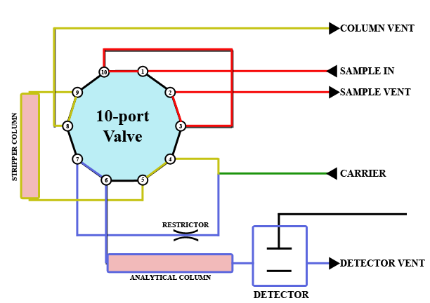 Raccolta dei campioni: i campioni vengono preparati per l'analisi con diversi metodi. I loop di campioni fissi sono il metodo di scelta per l'analisi del processo automatizzato (Immagine 1). Altre tecniche comuni vanno dalla semplice raccolta di un campione di gas in una siringa a gas, a metodi molto più complessi come la volatilizzazione di un liquido in un gas, la preconcentrazione su un mezzo di raccolta o la condensazione criogenica di un campione di gas.