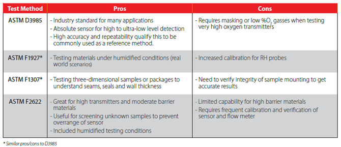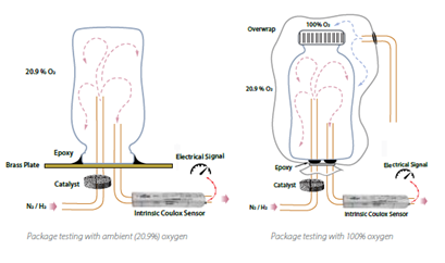 ASTM F2622 Questo metodo consente l'utilizzo di una più ampia varietà di sensori (coulometrici non assoluti), inclusi i sensori di ossigeno generici. Anziché consumare tutto l'ossigeno, ne viene analizzata solo una frazione, il che significa che il sensore deve essere calibrato con precisione e verificato continuamente.