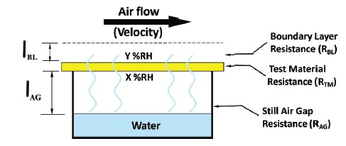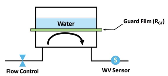 2. Test del film di protezione: viene condotto un test iniziale per misurare il WVTR del film di protezione (WVTRGF) e il traferro tra esso e il gruppo evaporatore, che genera un'umidità relativa del 100%.