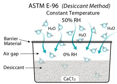 Questo metodo di prova determina gravimetricamente la quantità di vapore acqueo (allo stato stazionario) che permea attraverso materiali come plastica, carta, pannelli di fibra o prodotti in legno.