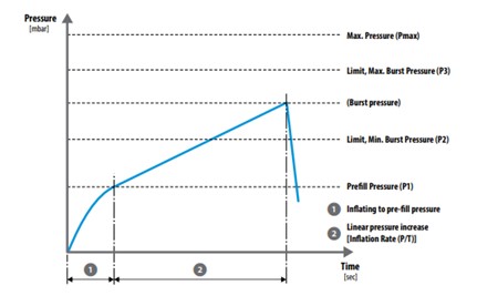 - La pressione nella confezione aumenterà alla velocità preimpostata finché la confezione non si rompe o non viene raggiunta la pressione massima specificata.