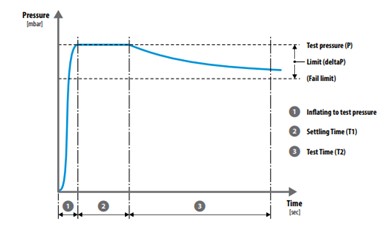 I risultati tipici di un test di tenuta sono mostrati nel grafico sottostante: