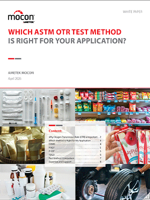 ASTM F2622 – OTR per pellicole e confezioni a velocità di trasmissione più elevata utilizzando un rilevatore elettrochimico (non coulometrico).