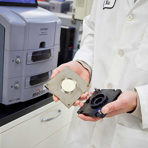 Test della velocità di trasmissione (TR) – misura la quantità di gas di prova (ossigeno, vapore acqueo o anidride carbonica) che passa attraverso un materiale attraverso la permeazione. Alcuni materiali sono progettati per essere altamente traspiranti (alti trasmettitori), mentre altri sono progettati per essere ottime barriere (bassi trasmettitori).